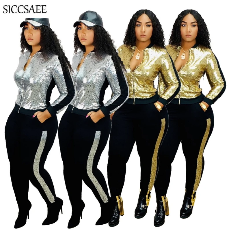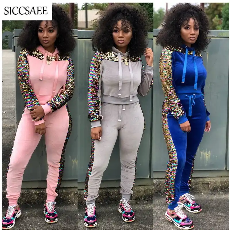 Glitter sweatsuit clearance, Piece Tracksuit Set Velour clearance