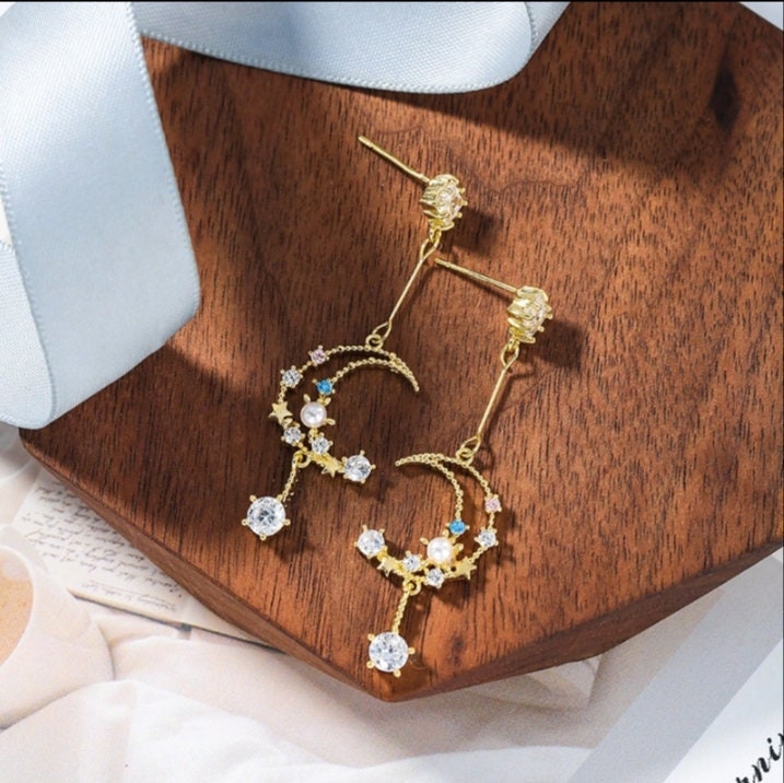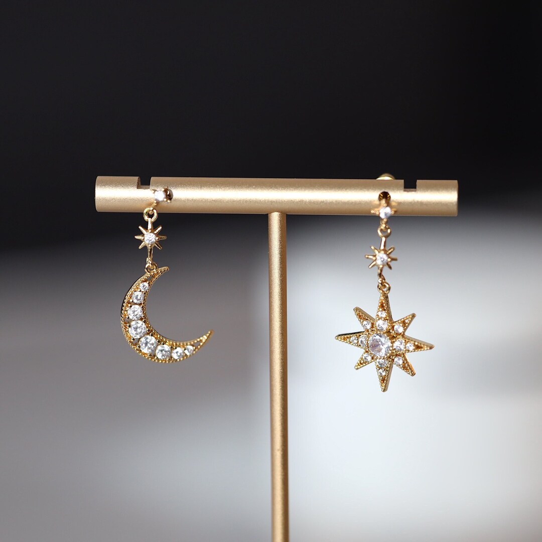 Moon and star drop earrings clearance, Moon & Star Dangle Earrings Moon and Star Drop Earrings | Etsy clearance