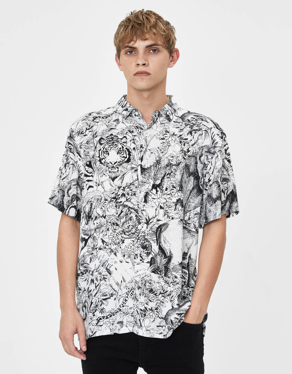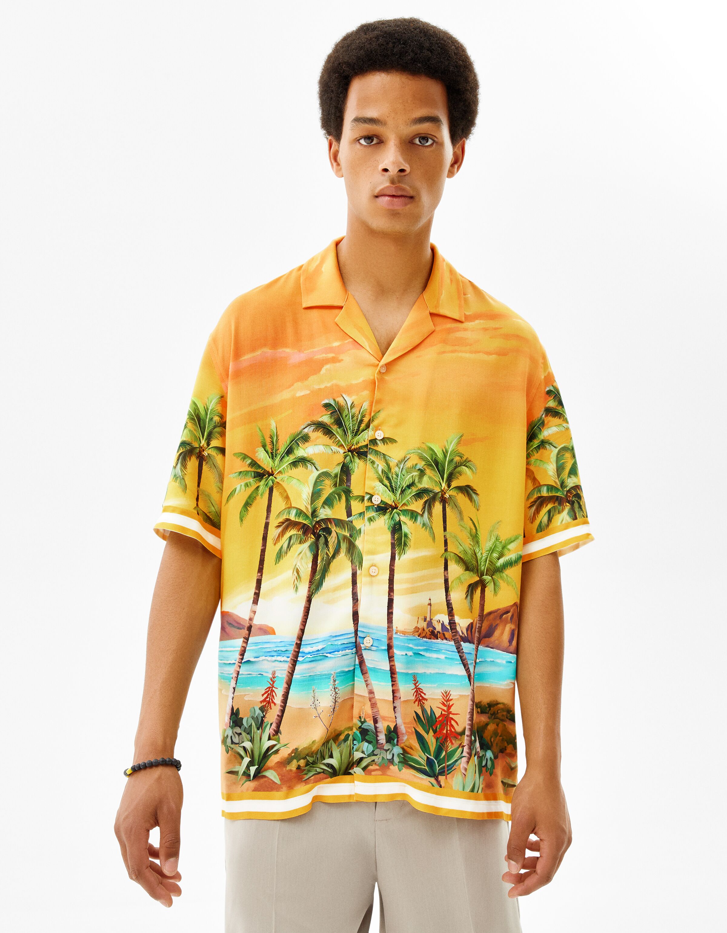 Bershka mens shirts clearance, Relaxed fit palm tree print shirt with clearance