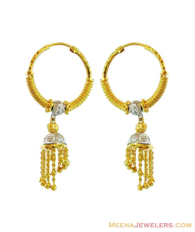 Earrings gold bali clearance, 22 Carat Indian Gold Bali Earrings with Cubic Zirconia stones clearance