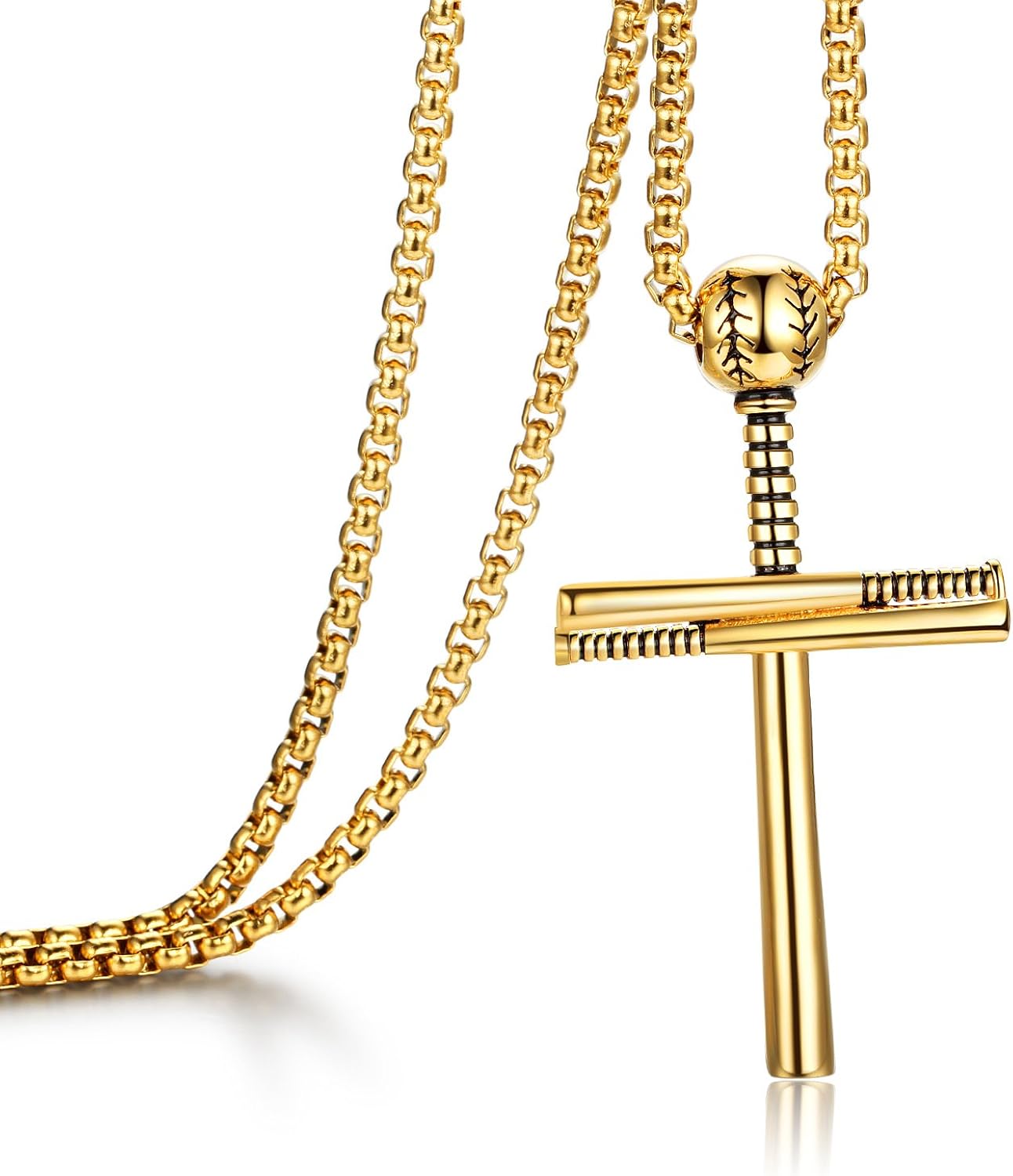 Baseball cross pendant only clearance, GelConnie Baseball Cross Necklace Gold Stainless Steel Necklace Sports Baseball Bat Cross clearance