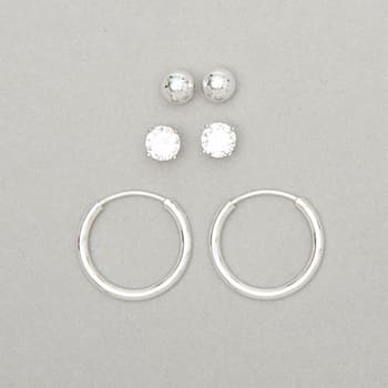 Set of 3 sterling silver studs clearance, Set of 3 Sterling Silver Hoop & Stud Earrings - Boscov's clearance