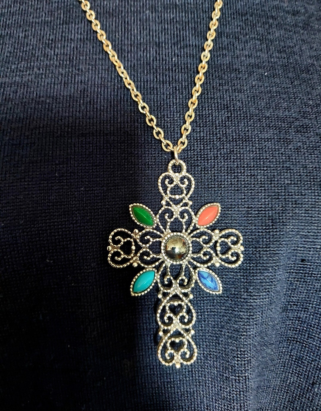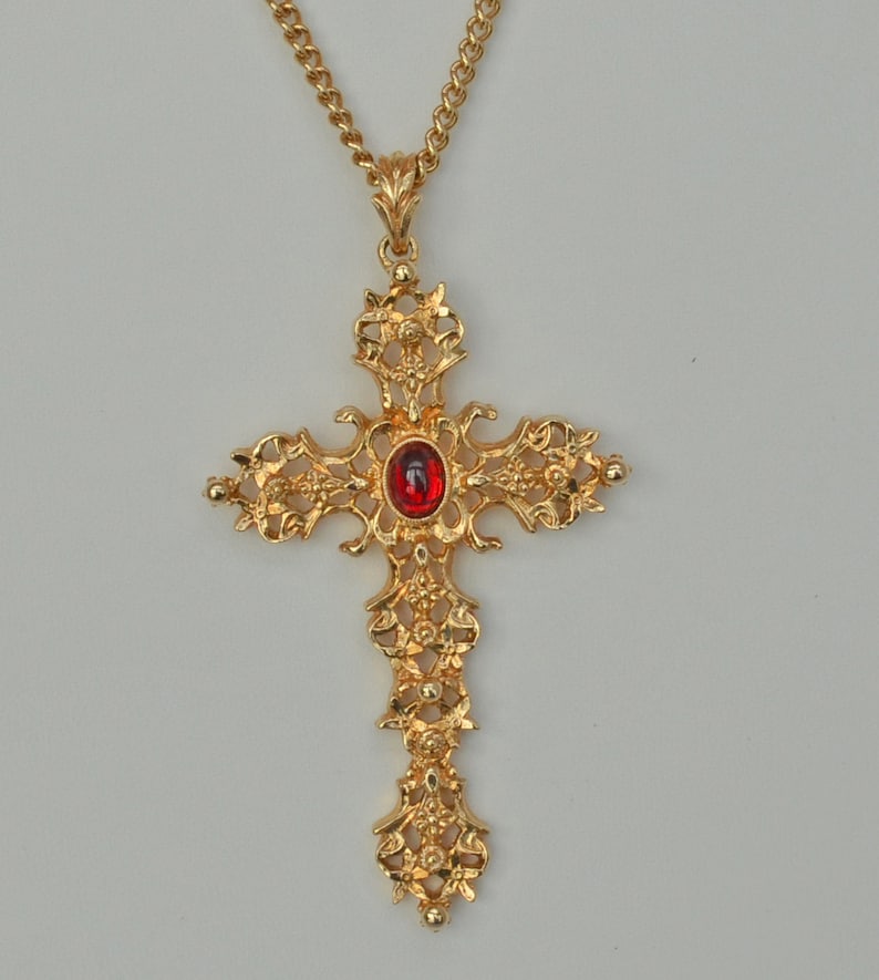 Avon cross necklace clearance, Vintage AVON Cross Necklace Gold Filigree by labaublesandbags clearance