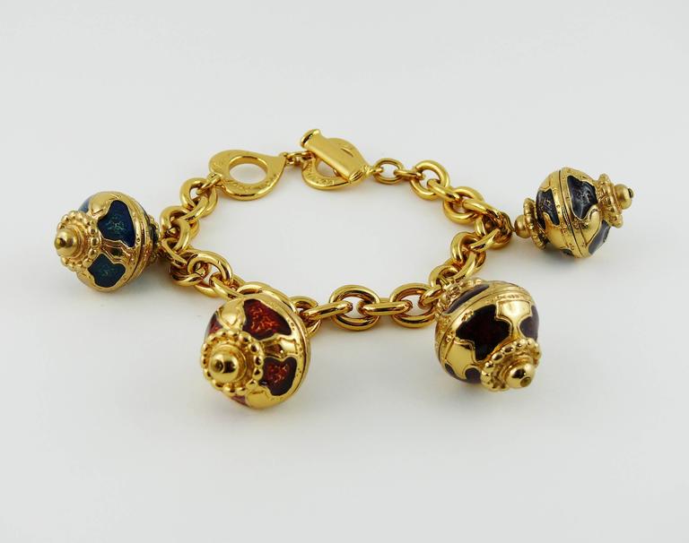 Ysl gold charm bracelet clearance, Yves Saint Laurent YSL Vintage Russian Style Enamel Charm Bracelet at 1stDibs | ysl charm clearance