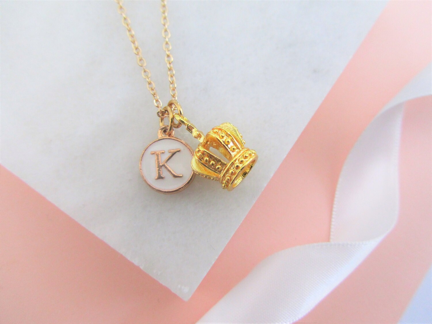 - Gold initial pendant with crown