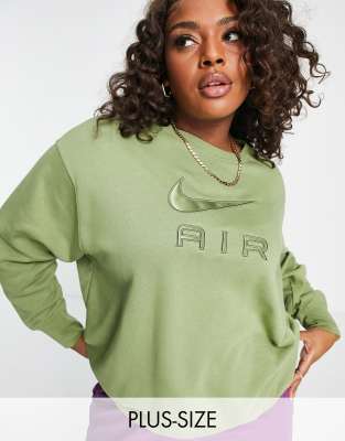 Nike air crew sweatshirt green clearance, Nike Air Plus oversized logo crew clearance
