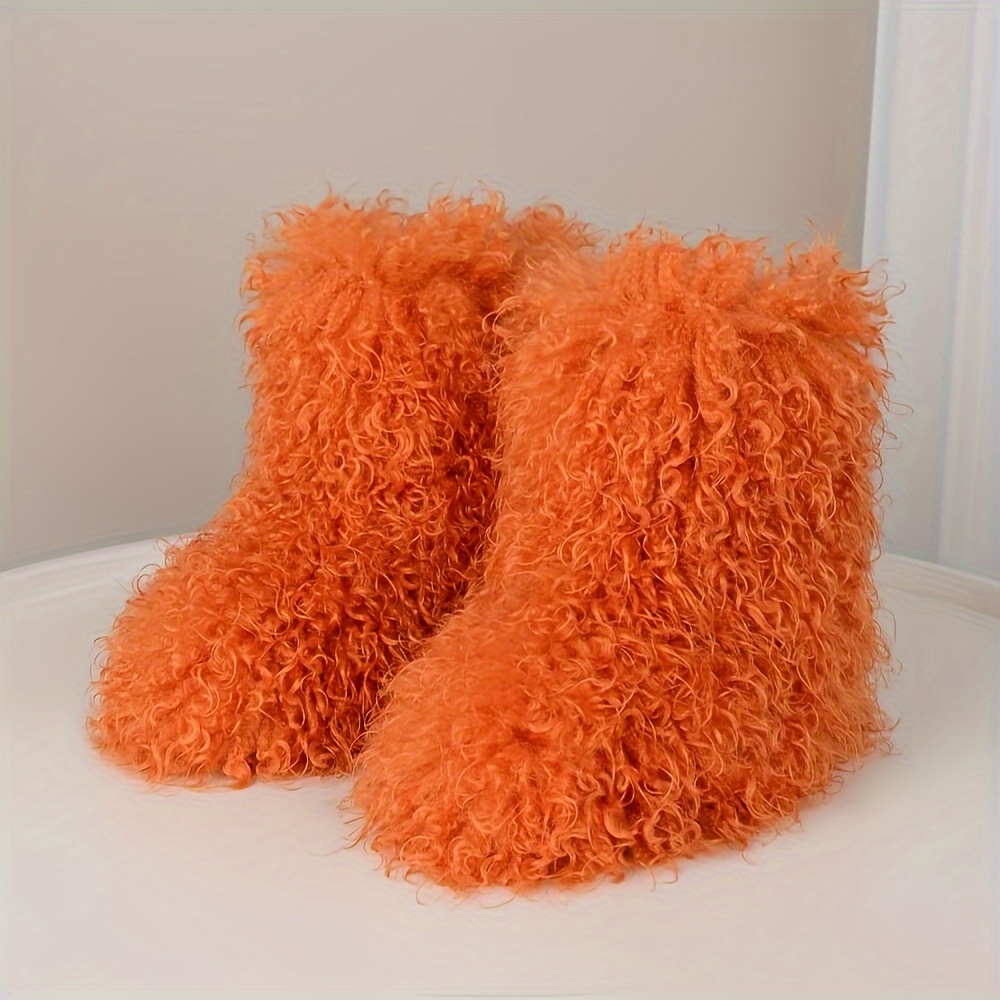 Orange fur boots clearance, Women's Faux Fur Snow Boots Fashion Solid Color Slip Fuzzy - Temu clearance
