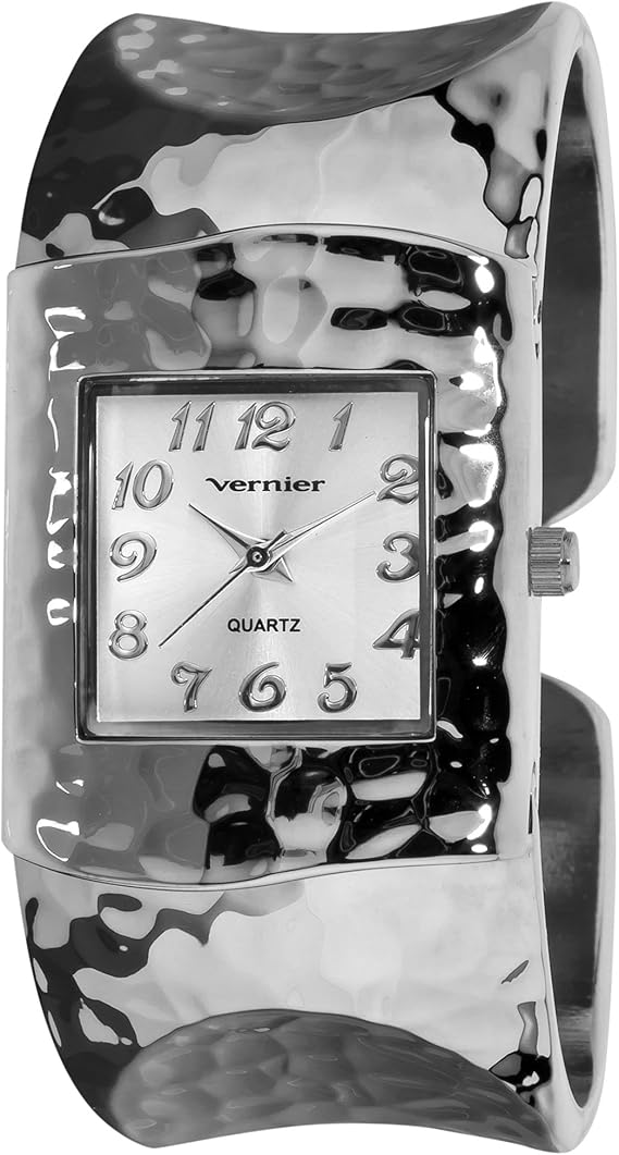 Vernier quartz watch clearance, Silver Tone Hammered Bangle Watch clearance
