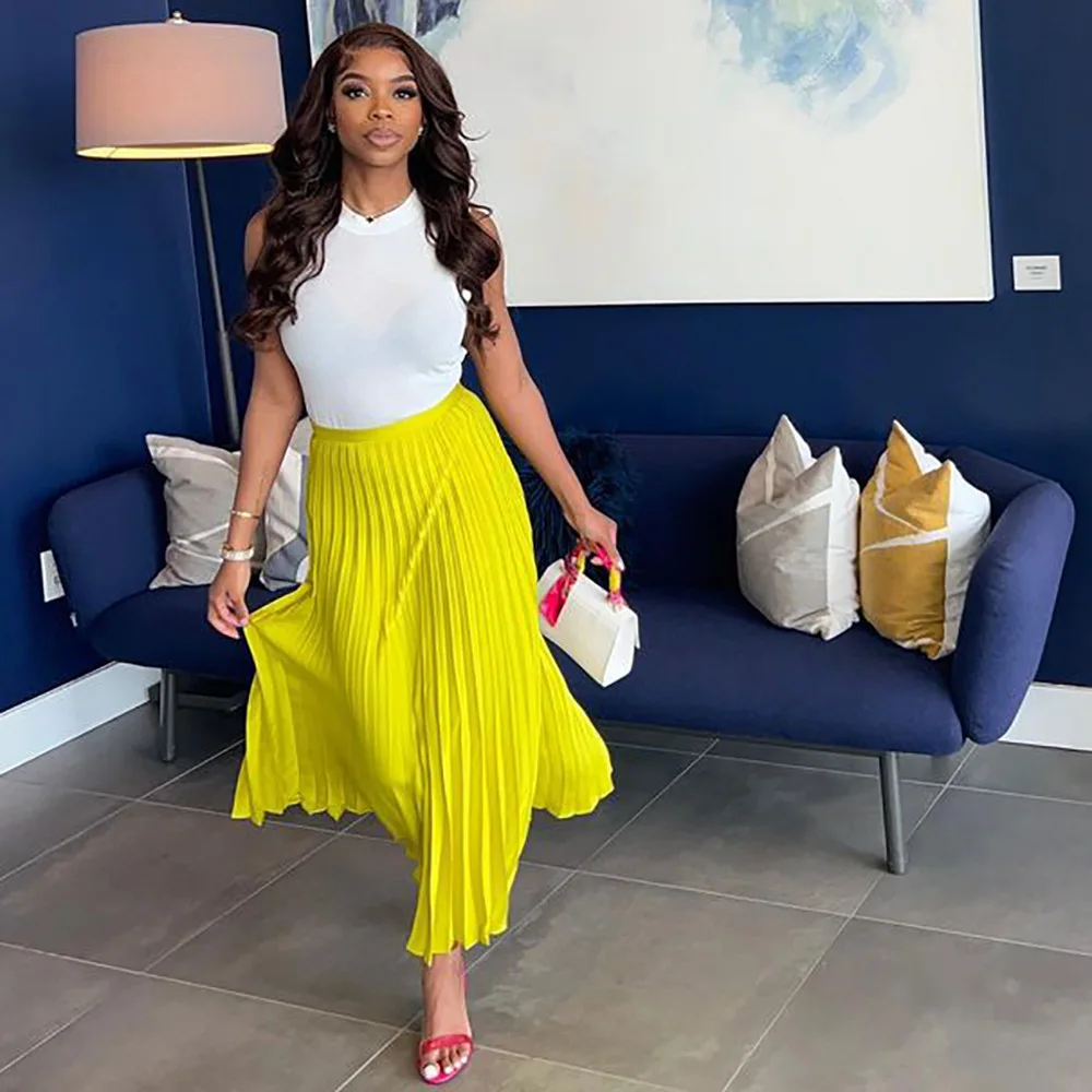 - Yellow pleated maxi long skirt free shipping