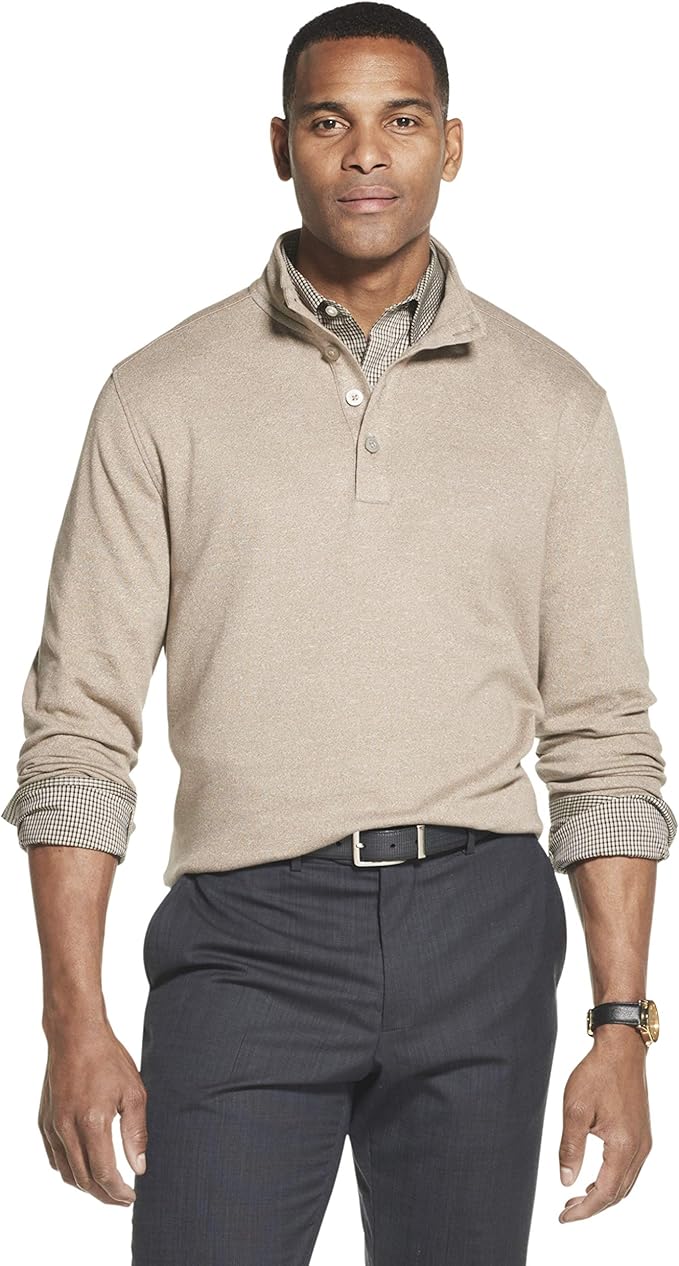 Van heusen pullover clearance, Van Heusen Men's Long Sleeve Never Tuck Jaspe Button Mock Pullover at Amazon Menâs Clothing store clearance