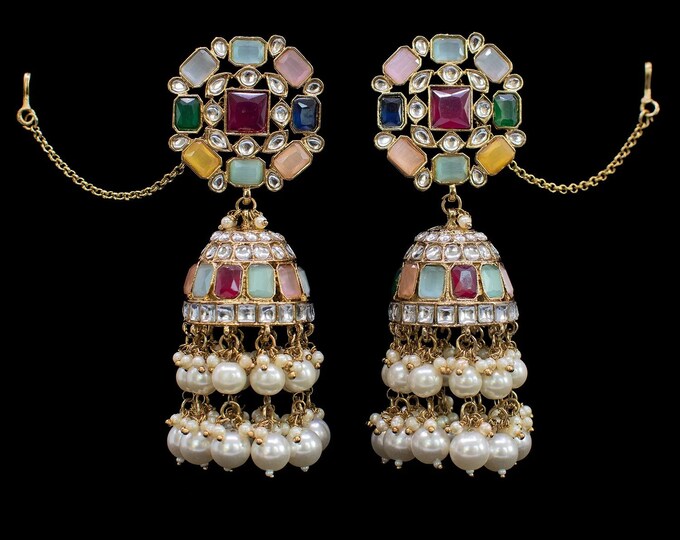 Navratan jhumkas clearance, Navratan Jhumka / Gold Jhumka/ Punjabi Earrings/ Indian - Etsy clearance