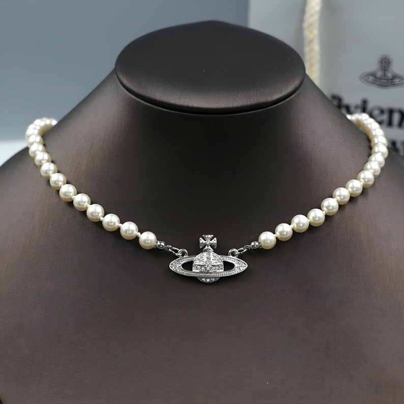 Vivienne westwood pearl necklace cost clearance, Vivienne Westwood Pearl Necklace 925 Sterling Silver Saturn Pendant Gift Box Package Pearl Chain clearance