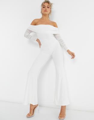 Mesh leg jumpsuit clearance, Club L London mesh detail bardot detail clearance