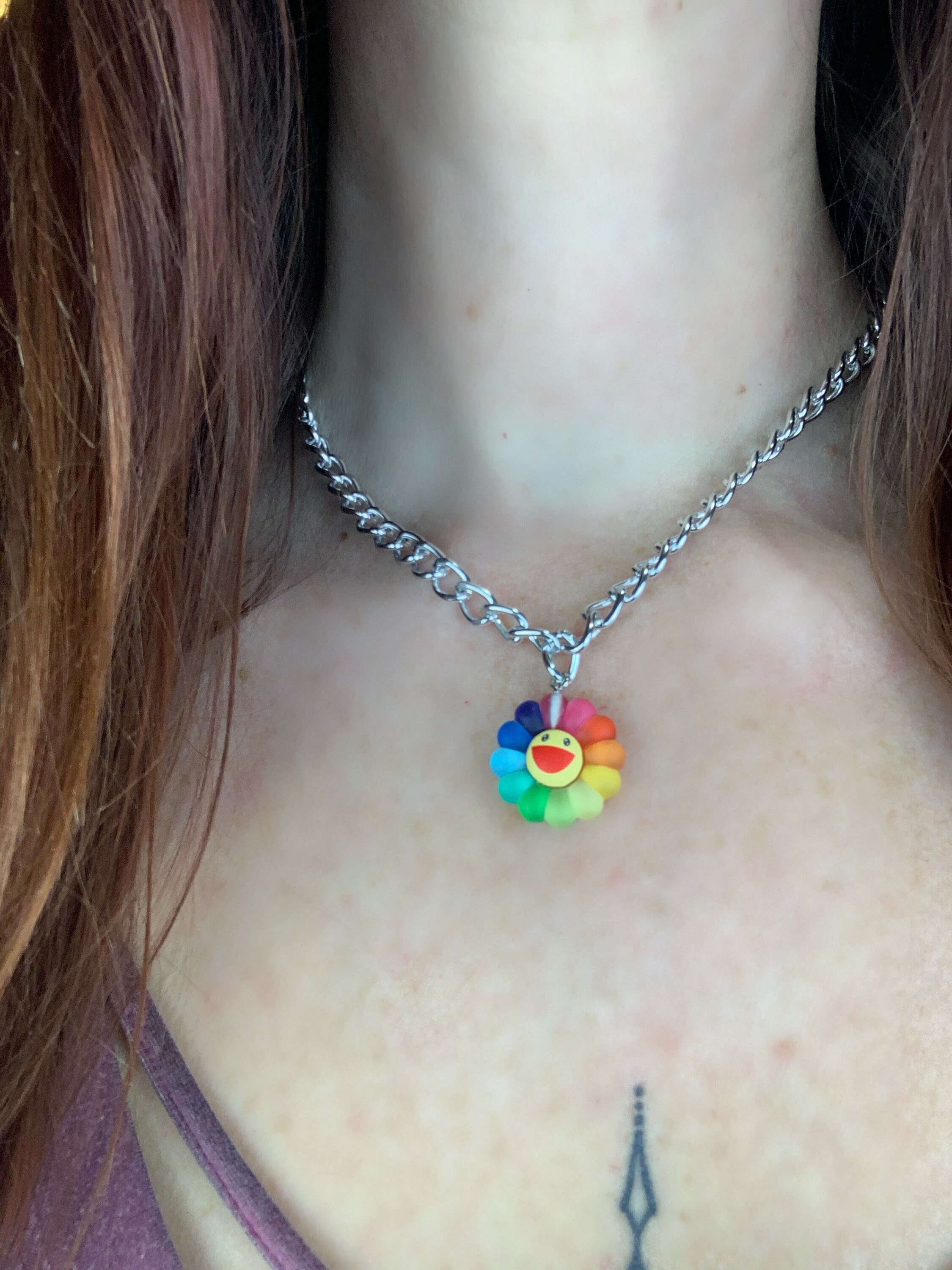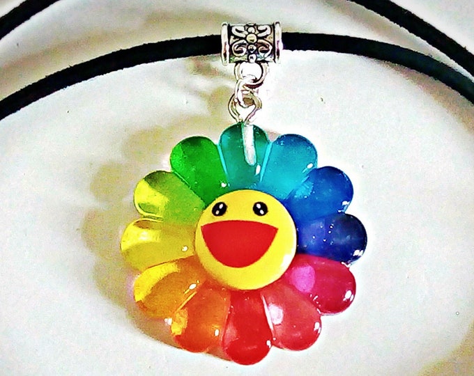 Takashi murakami rainbow flower necklace clearance, Takashi Murakami Inspired Rainbow Flower Necklace | Etsy clearance