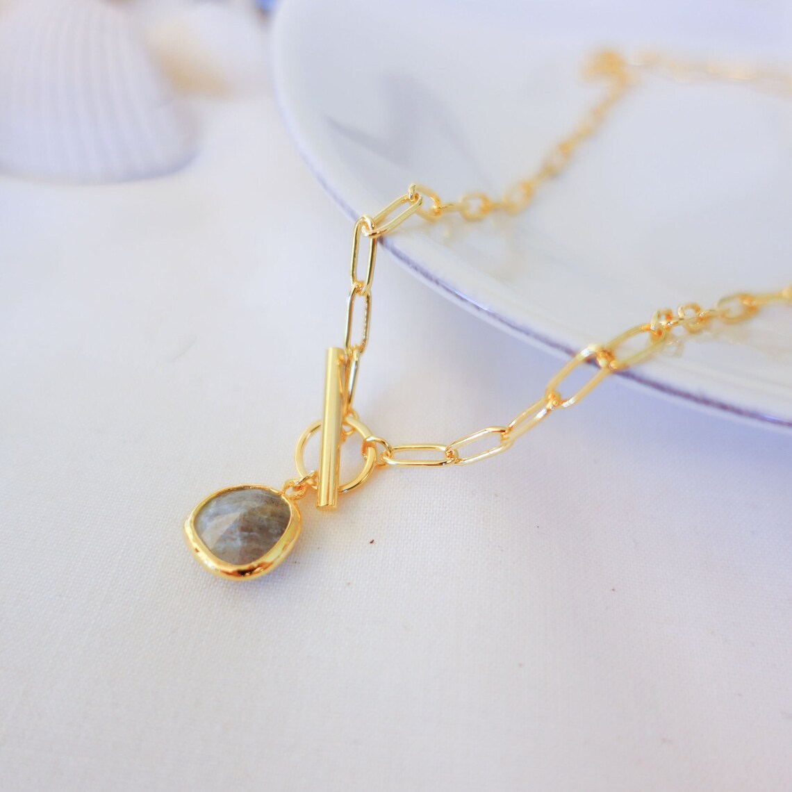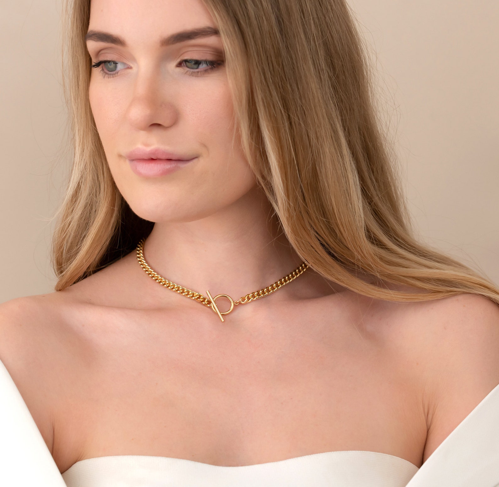 Toggle choker necklace clearance, Toggle Choker Necklace Gem Necklace 14k Gold Link Chain - Etsy clearance