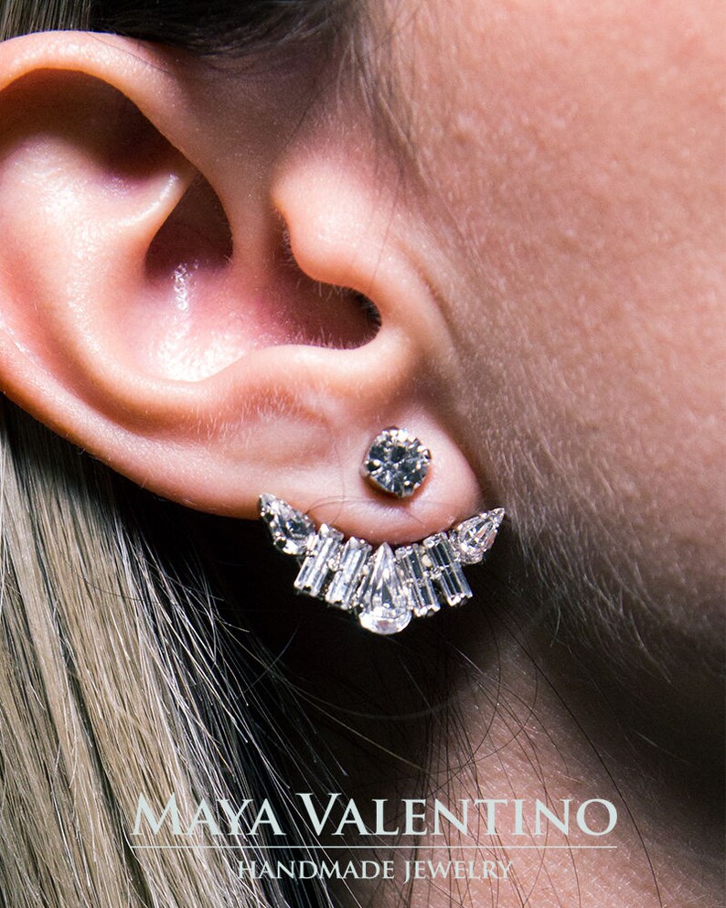 Jacket earrings swarovski clearance, Ear jacket Gold crystal ear jacket Bridal earrings | Etsy | Swarovski earrings, Bridesmaid clearance