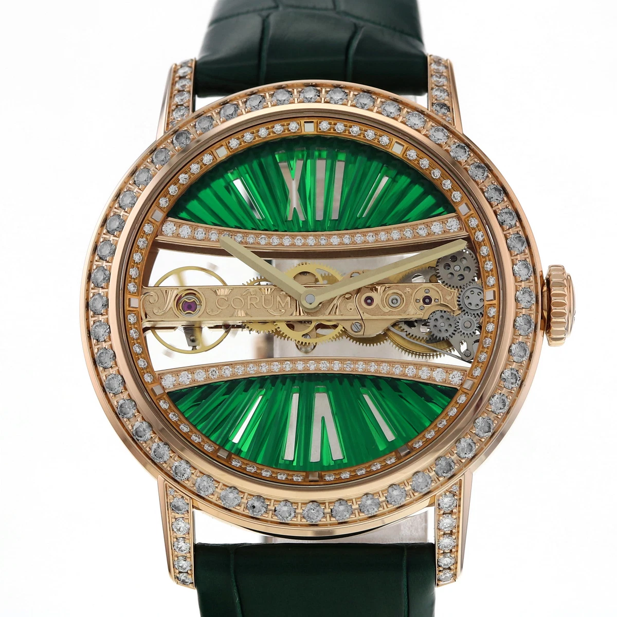 Corum golden bridge diamond clearance, Corum Golden Bridge B113/03292 Green Roman Factory Diamond 39mm Rose Gold Watch | eBay clearance