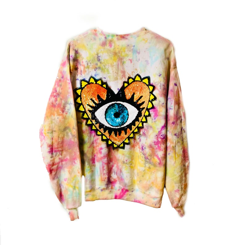 Tie dye rainbow jumper clearance, Tie Dye Rainbow Sequin Heart Patch Pullover Sweatshirt Jumper | Etsy clearance