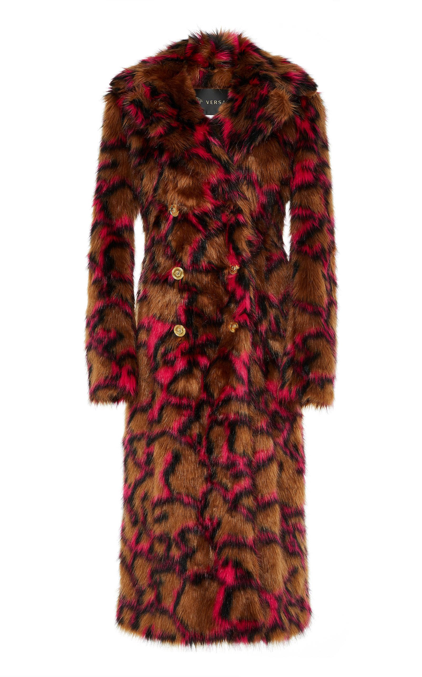 Versace fur coat clearance, Versace Double Breasted Faux Fur Coat clearance