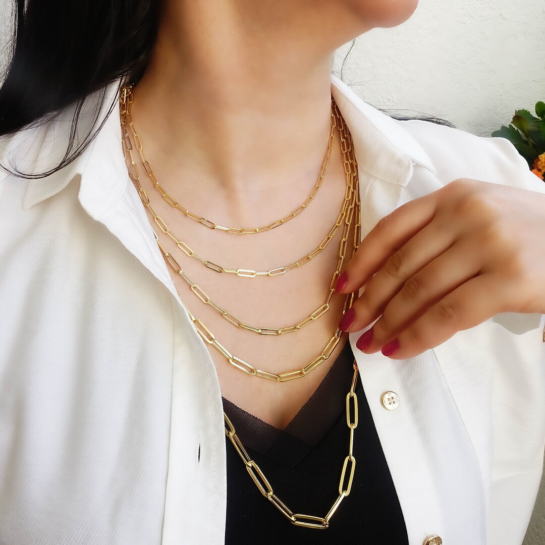Thick paperclip chain necklace clearance, Paperclip Chain Necklace Chunky Paperclip Chain Thick Gold - Etsy clearance