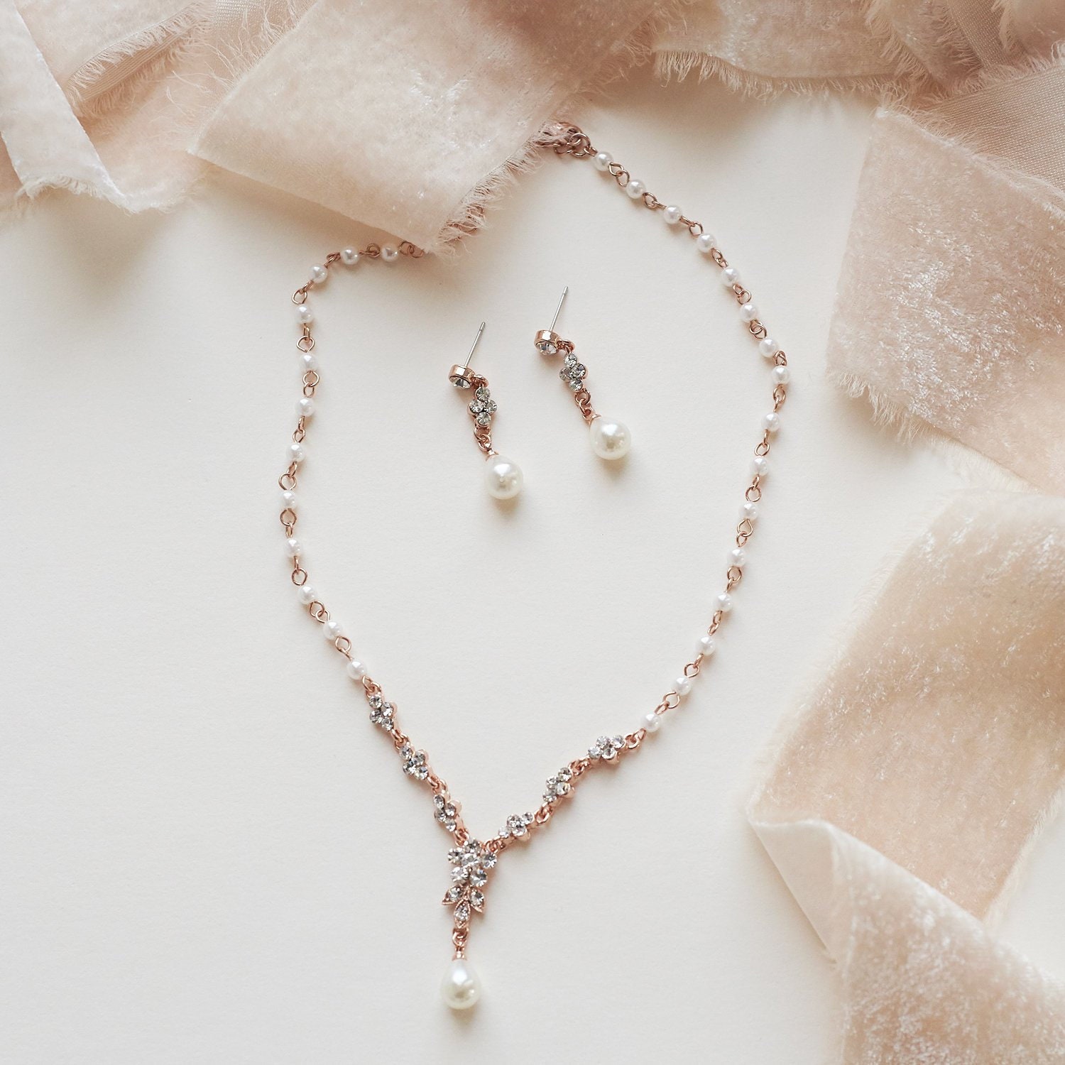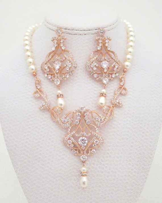 Rose gold pearl jewelry set clearance, Rose Gold necklace pearl necklace pearl jewelry jewelry set | Etsy clearance