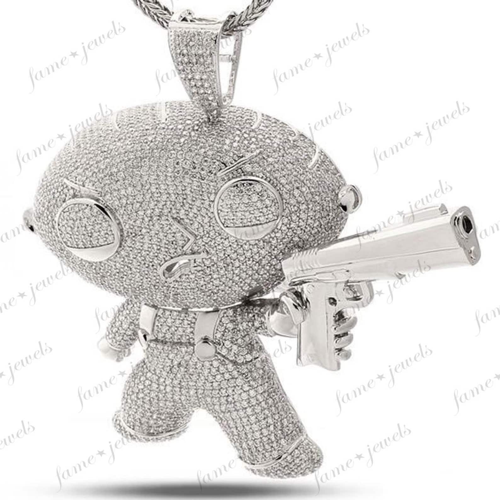 Stewie necklace clearance, 2.90 Ctw Round Cut Diamond Stewie Griffin Cartoon Pendant 10K | Etsy clearance
