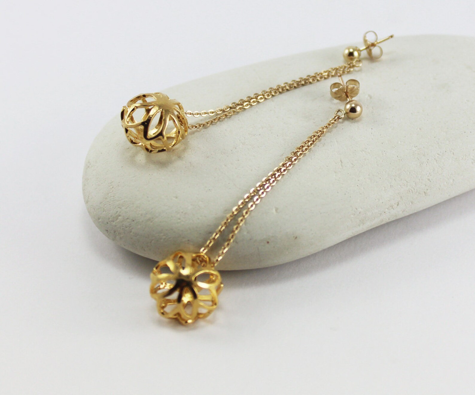 Flower chain earrings clearance, Flower Gold Chain Earrings Long Flower Earrings Dangle - Etsy clearance