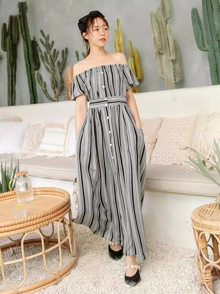 - Striped off the shoulder maxi dress shop