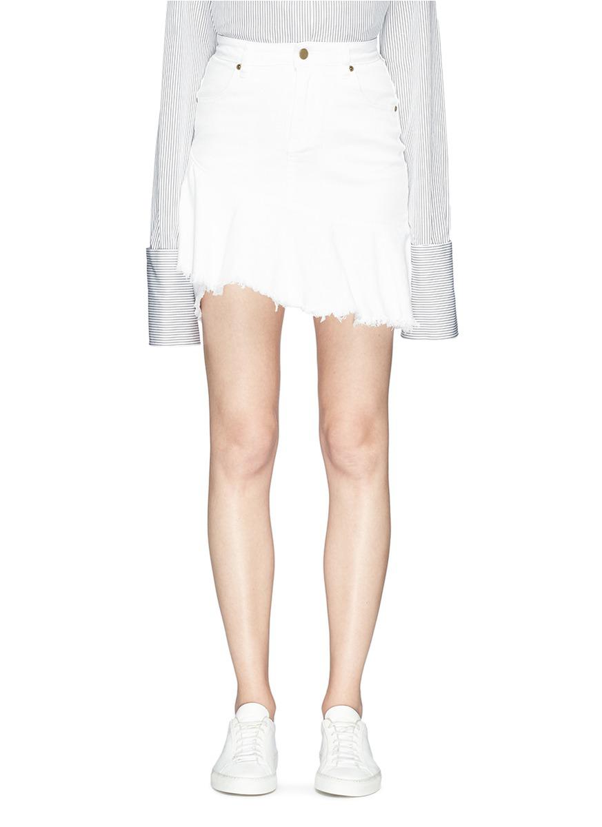 - Shopping White denim ruffle skirt