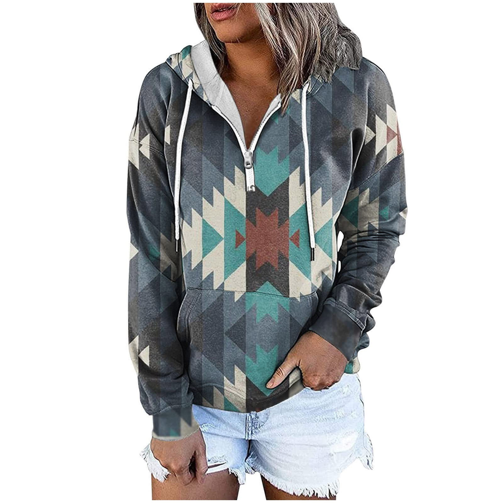Western graphic sweatshirts clearance, Lastesso Womens Long Sleeve Western Hoodies Ethnic Graphic Pullover 1/4 Zipper Aztec Sweatshirts clearance