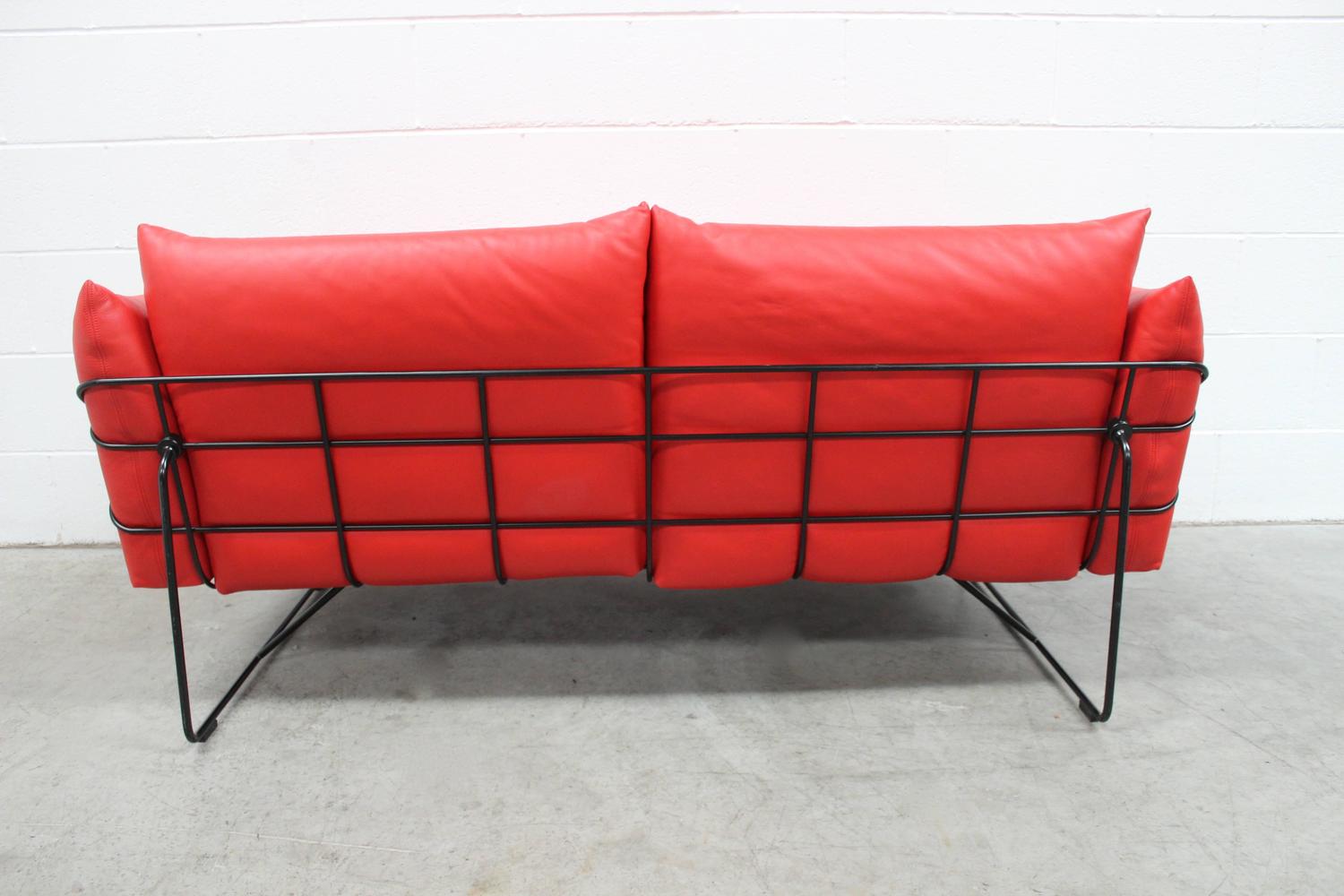 Mcl leather herman miller clearance, Herman Miller "Wireframe" Two-Seat Sofa in Red "MCL" Leather by Hecht and Colin For Sale at clearance