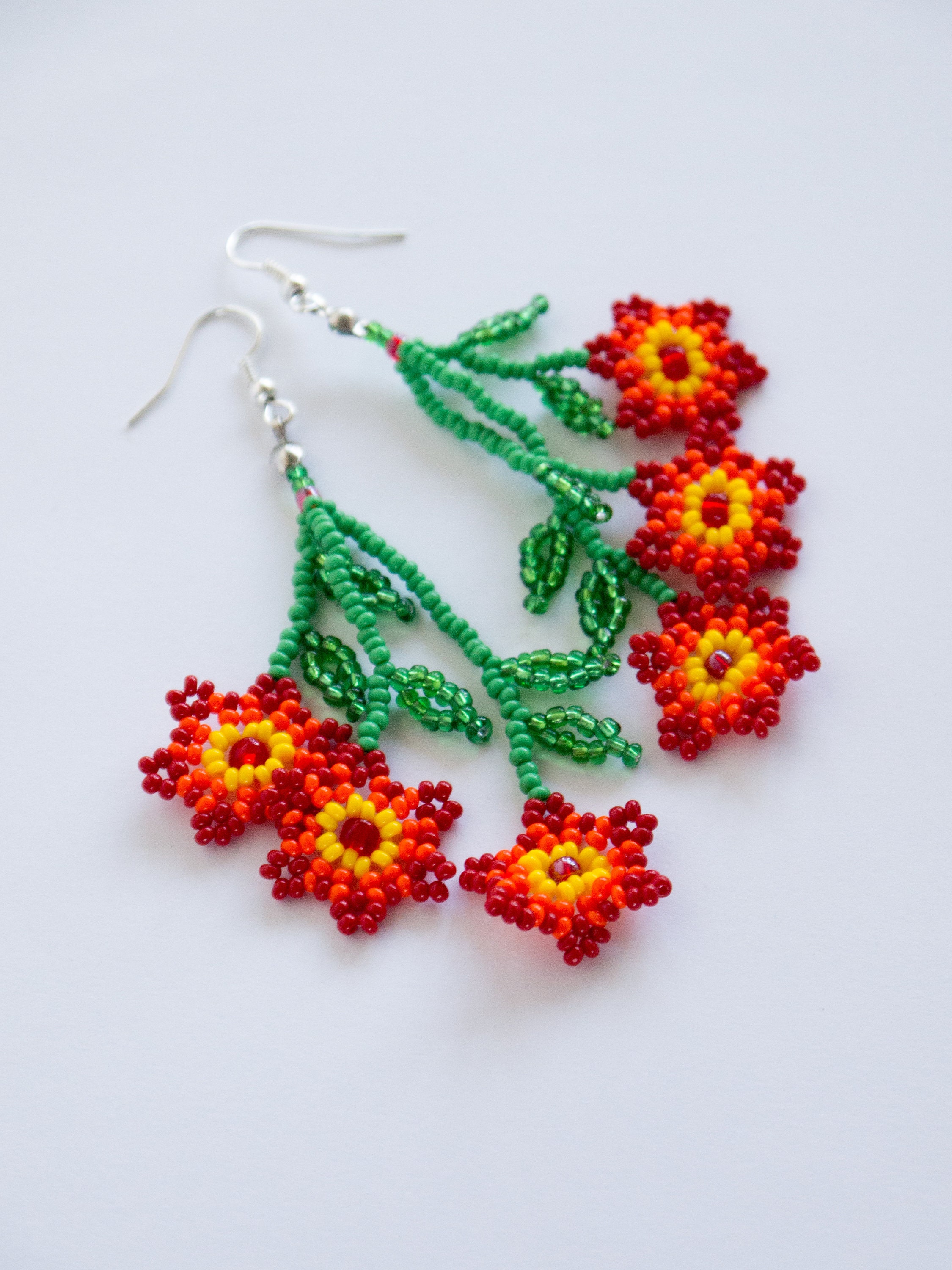 Seed bead flower earrings clearance, Huichol Flower Earrings Beading Tutorial Seed Bead Earrings - Etsy clearance