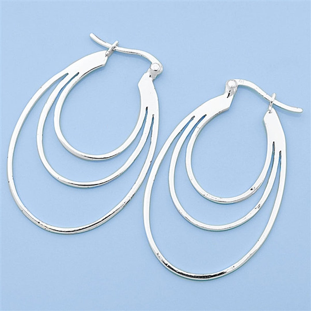 - Silver triple hoop earrings free shipping
