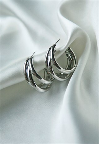 - Silver triple hoop earrings outlet