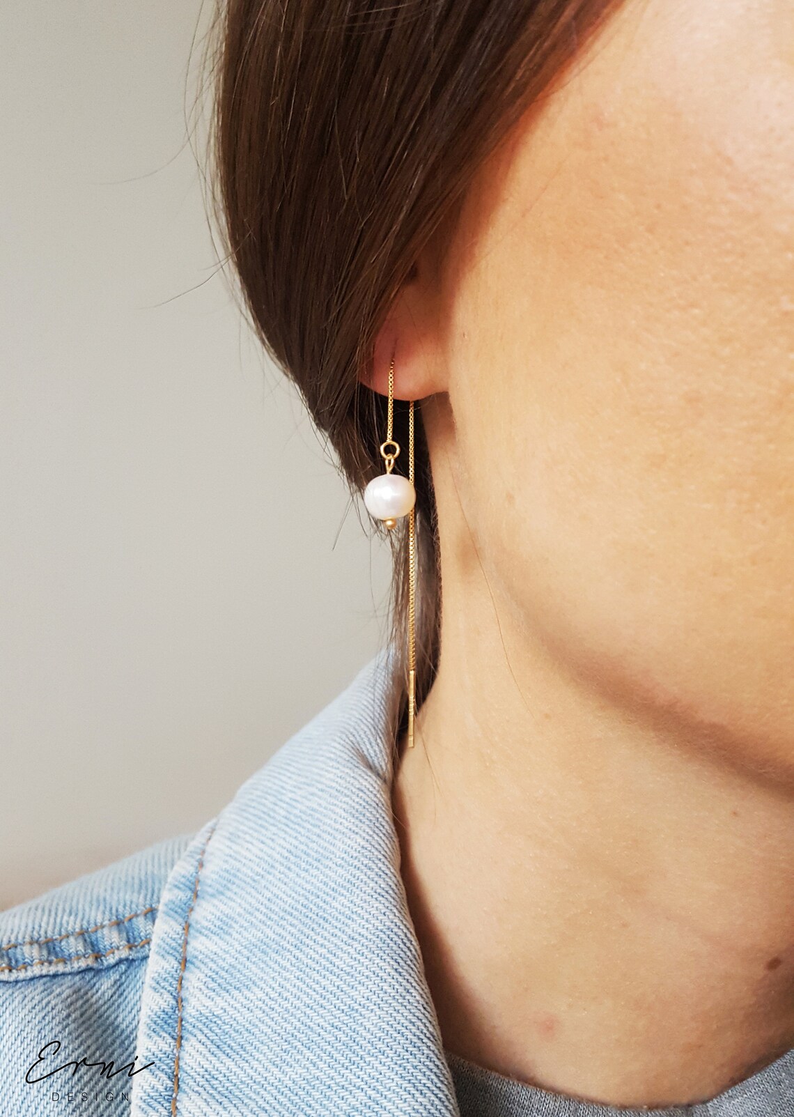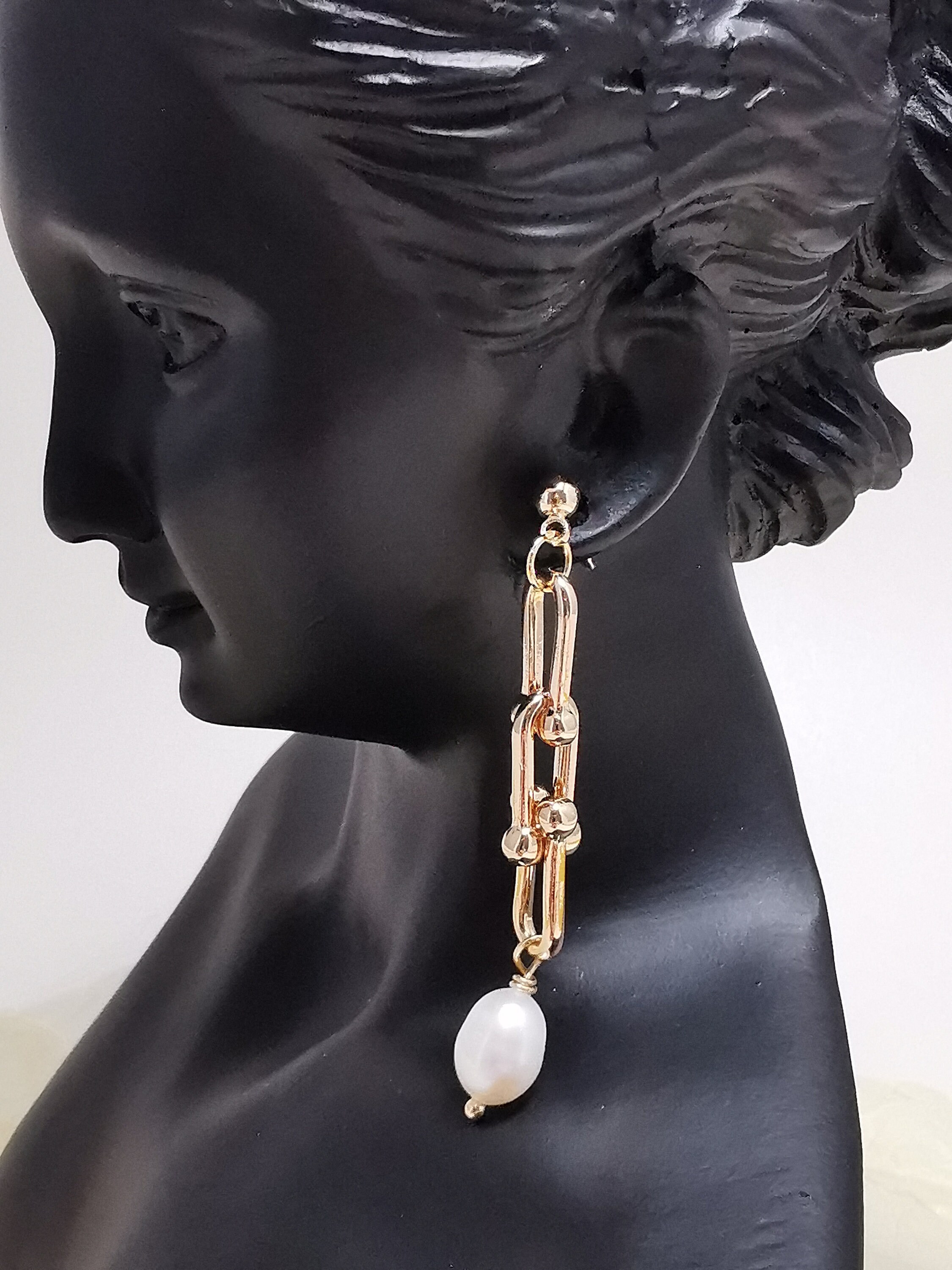 Pearl chain earrings clearance
