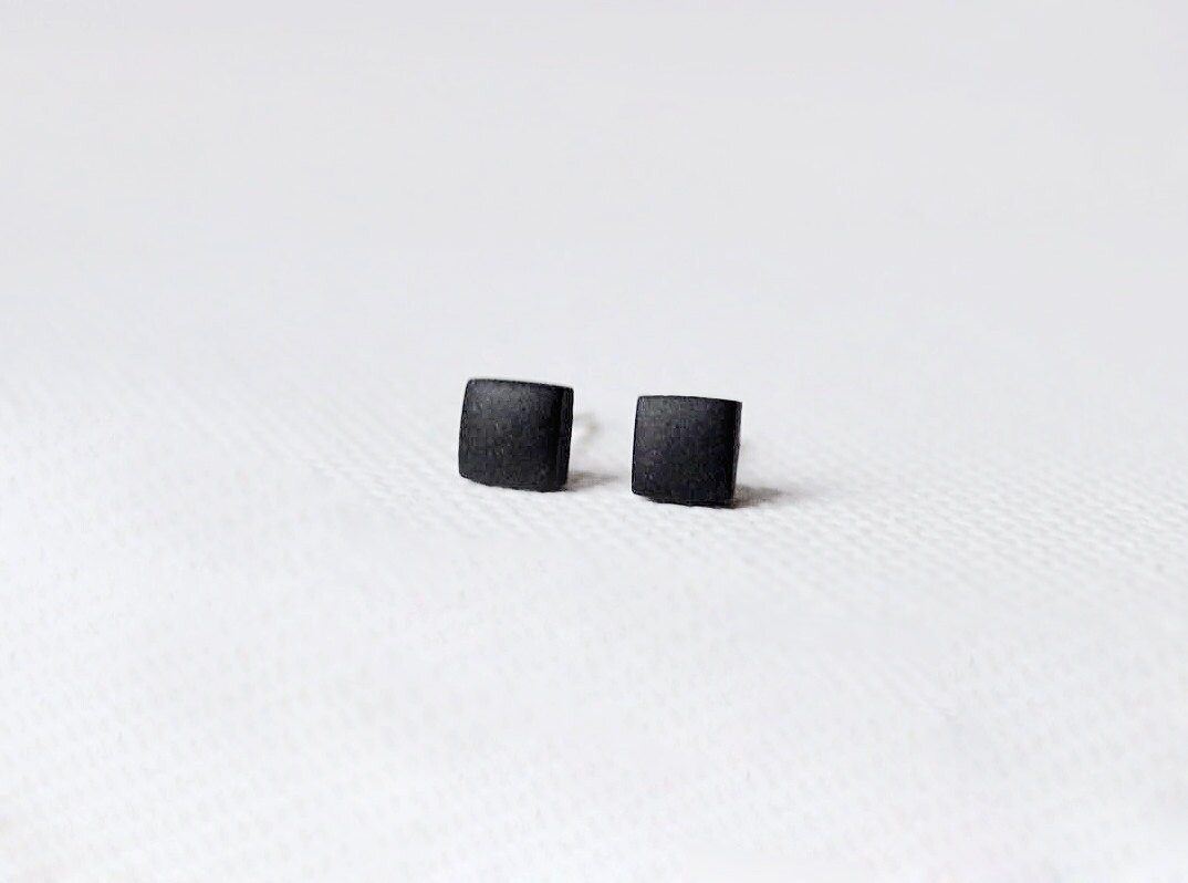Black square stud earrings mens clearance