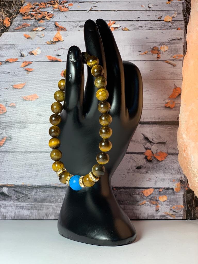 Howlite and tiger's eye clearance, 10mm blue howlite and 8mm tiger eyes with gold spacers | Etsy clearance