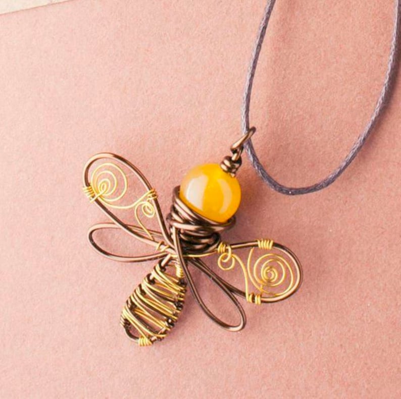 Bee earrings and necklace set clearance, Bee Jewelry Set, Bee Earrings and Necklace, Wire Wrapped Bees, Honey Set, Copper Bee Set, Bee clearance