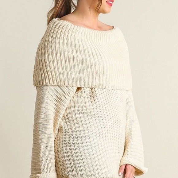 Umgee cowl neck sweater clearance, Umgee Chunky Off Shoulder Cowl Neck clearance