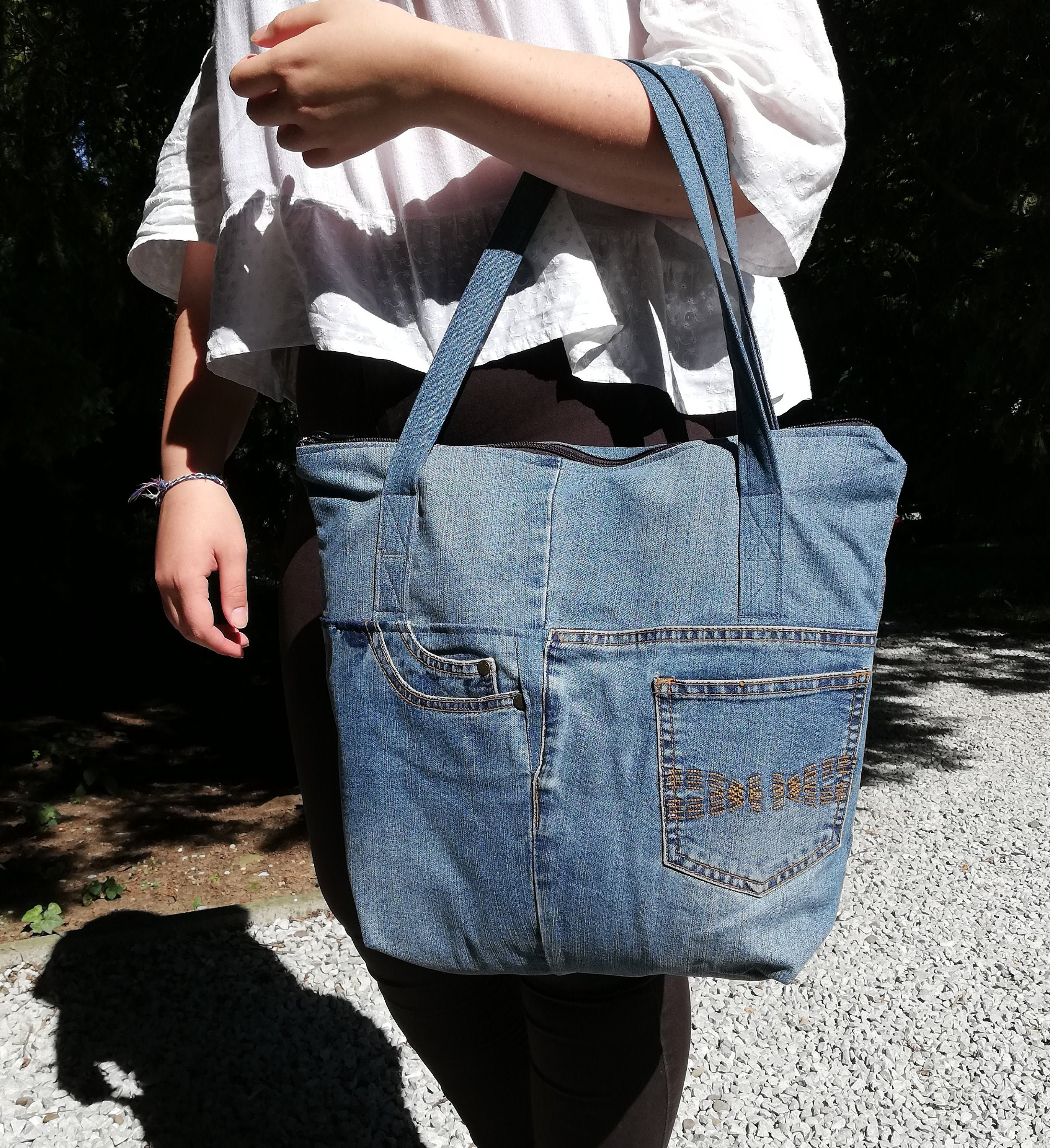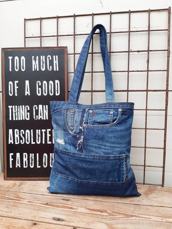 Jeans bag clearance, Jeans Patchwork Tote Bag Upcycled Denim clearance