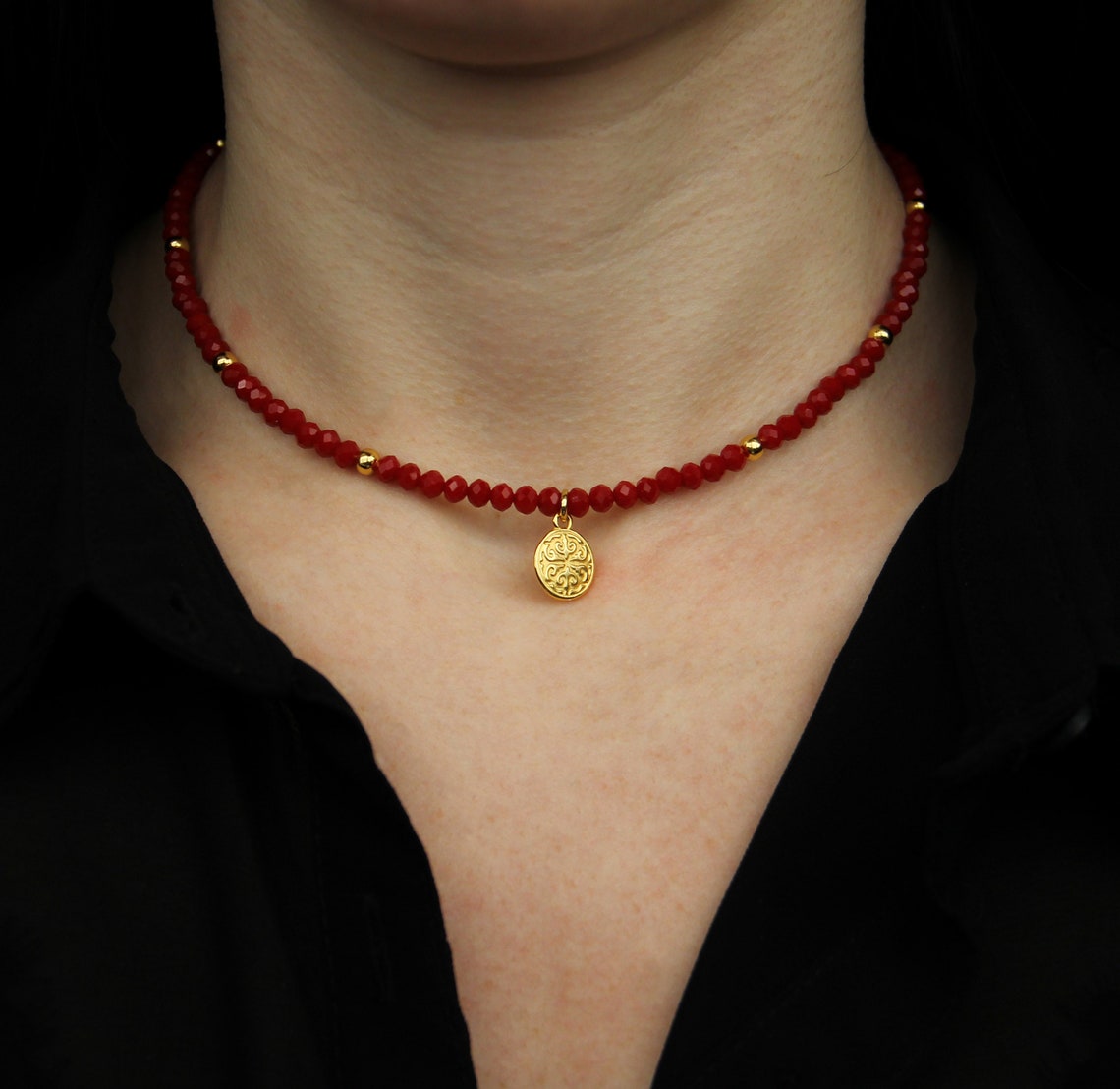 Red beads choker clearance