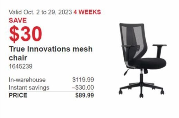 True mesh chair costco clearance, True Innovations mesh chair offer at Costco clearance