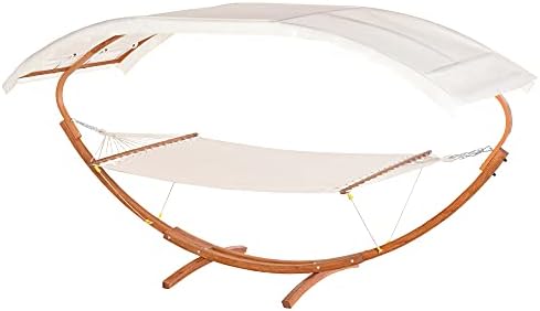 Outsunny wooden hammock clearance, Outsunny 13FT Wooden Arc Hammock with Canopy, Outdoor Hammock Bed with Wood Arc Stand for Patio clearance