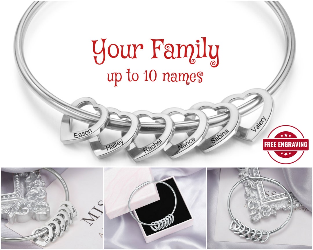 Heart name bracelet clearance, Personalized Heart Name Bracelet Engraved Name Bangle Mothers Bracelet Family Names Custom clearance