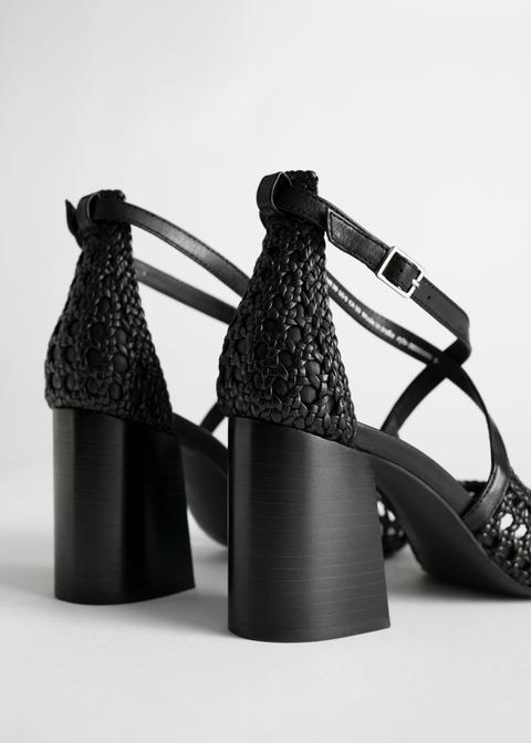 - Woven leather heeled sandals