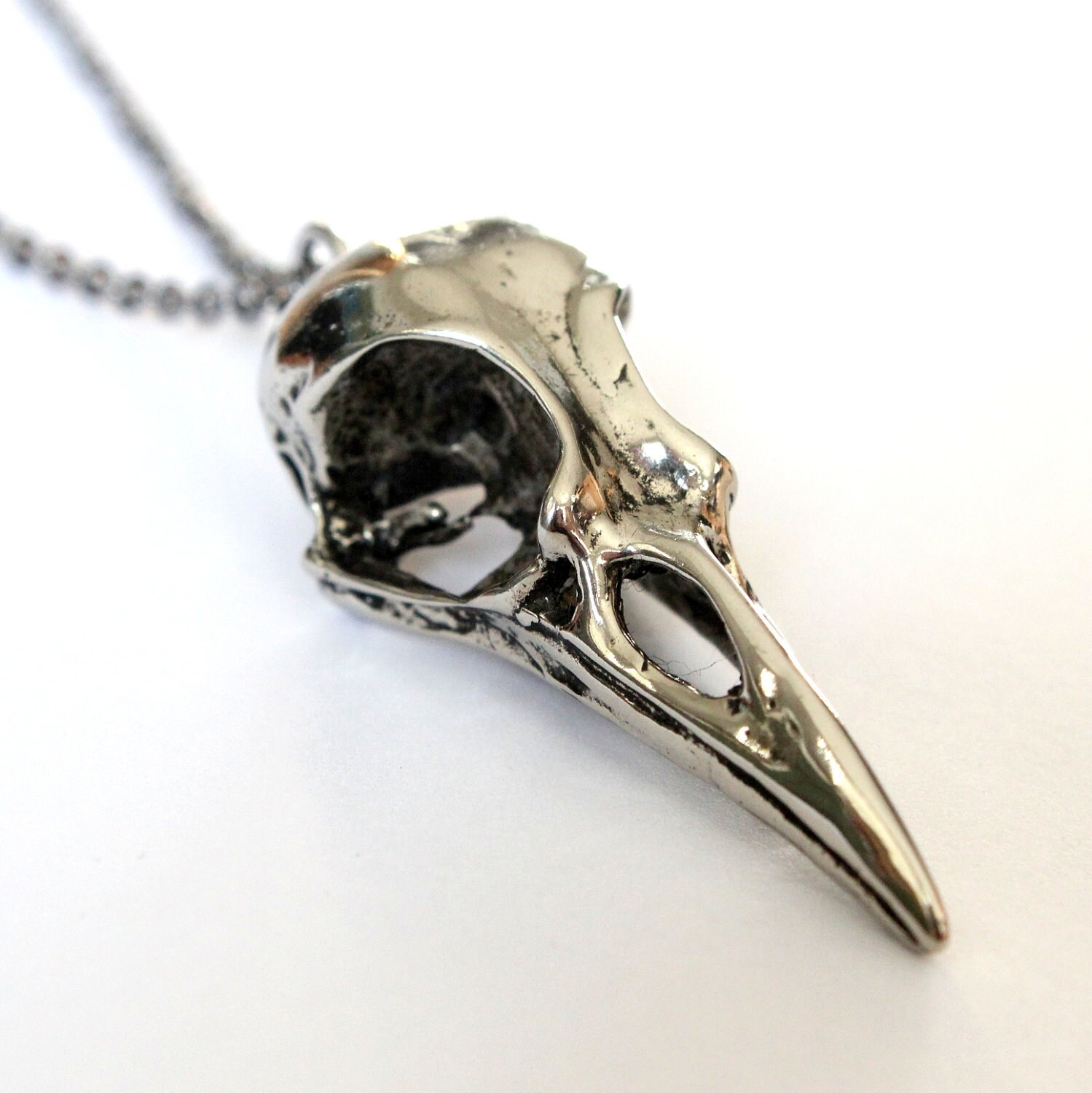 Silver raven skull necklace clearance, Raven Skull Necklace - Medium | Gothic Bird Skull Pendant by RavynEdge clearance