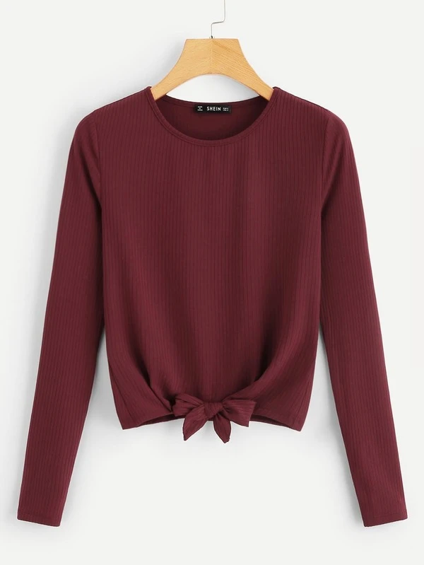 Knit tops australia clearance, Knot Front Ribbed Knit Tee for Sale clearance