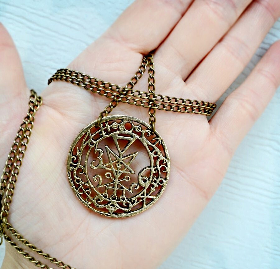 Lilith necklace clearance, Seal Of Lilith Pendant Solid Bronze Amulet with Chain clearance
