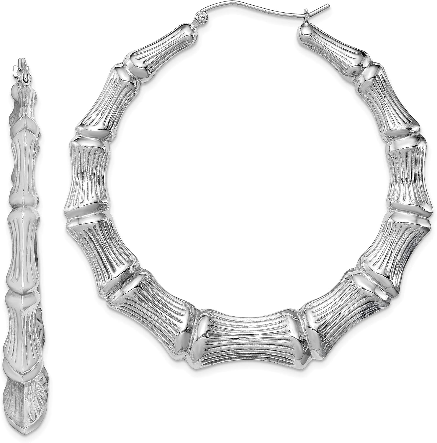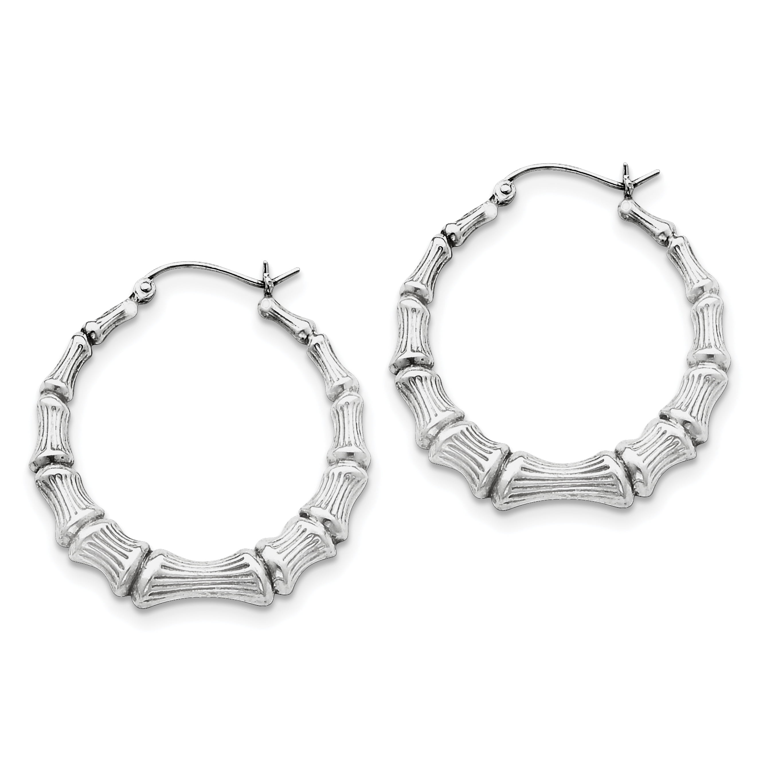 Sterling silver bamboo earrings clearance, Amazon.com: 925 Sterling Silver Rhodium-plated Bamboo Hoop Earrings: Jewelry clearance
