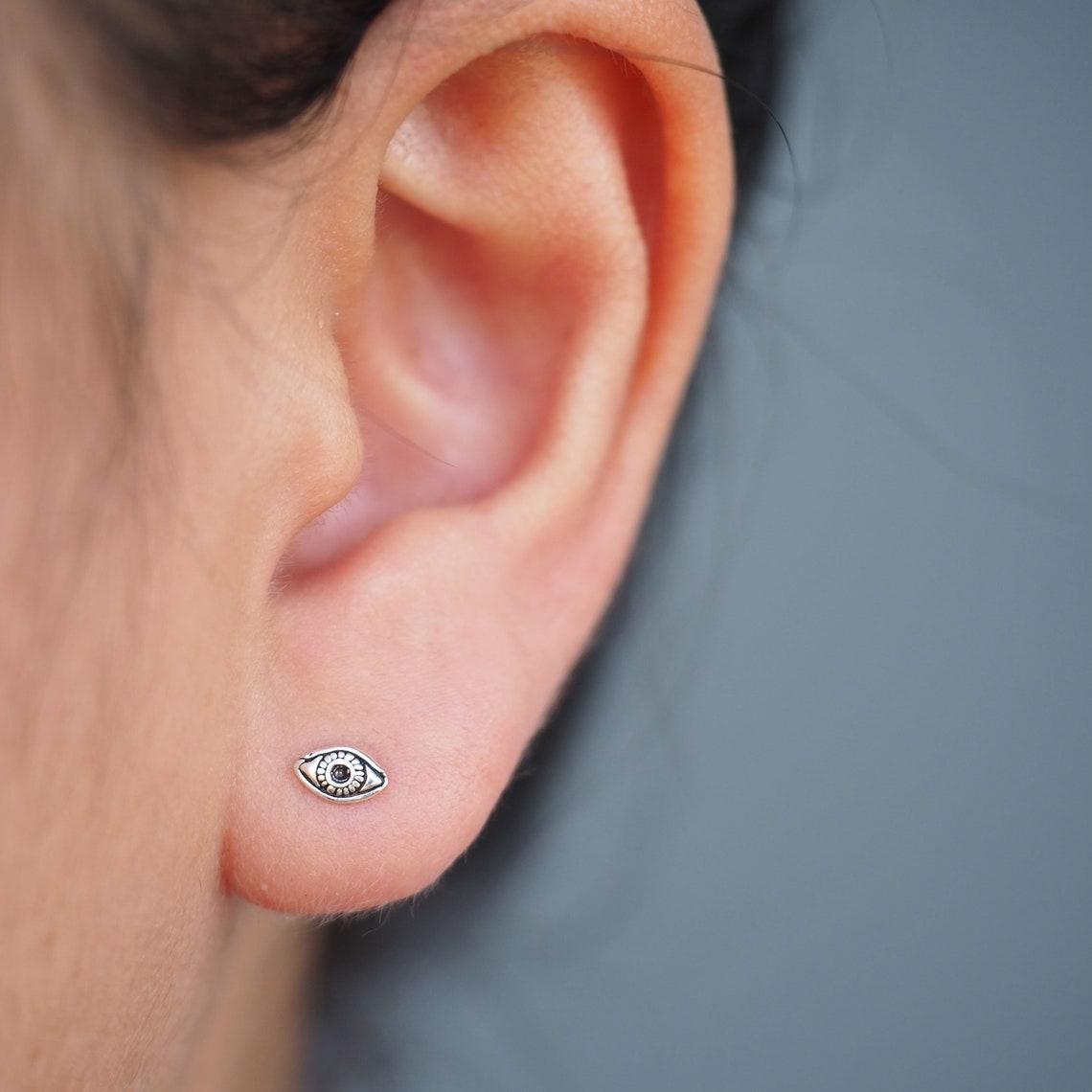 - Sterling silver evil eye earrings